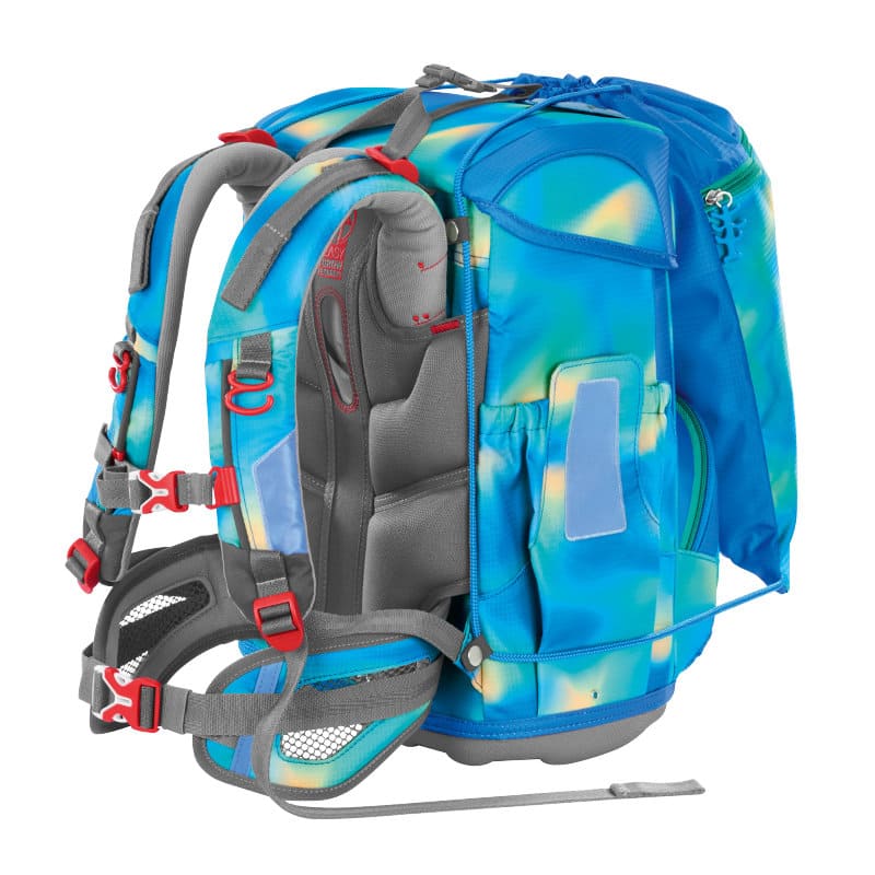 Wolkengleich, das macht den Cloud aus. Das Easy-Elastic-Backsystem ist eine ultraleichte, elastische Fiberglas-Rückenkonstruktion und schmiegt sich an den Rücken. Die ergonomisch geschwungene Rückenpartie mit atmungsaktive Rückenpolster, die verstellbaren und ergonomisch geformten Schulterträger sind zusammen mit dem höhenverstellbaren und abnehmbaren Brustgurt und der abnehmbaren Hüftflosse verantwortlich für den Tragekomfort. Die Lageverstellriemen helfen zusätzlich zur körpernahen Schulranzenpositionerung. Die Rückenkonstruktion ist ultraleicht und flexibel aus Fiberglas und zusammen mit den besonders leichten Materialien spart der Ranzen trotz Geräumigkeit Gewicht. Nach jedem Wachstumsschub des Schulkindes kann der Ranzen ganz einfach über die verschiedenen Gurte individuell und rasterfrei angepaßt werden. Mit seinem Leergewicht von 990g ist der Cloud, trotz seines Platzangebotes wolkenleicht und bequem zu tragen.