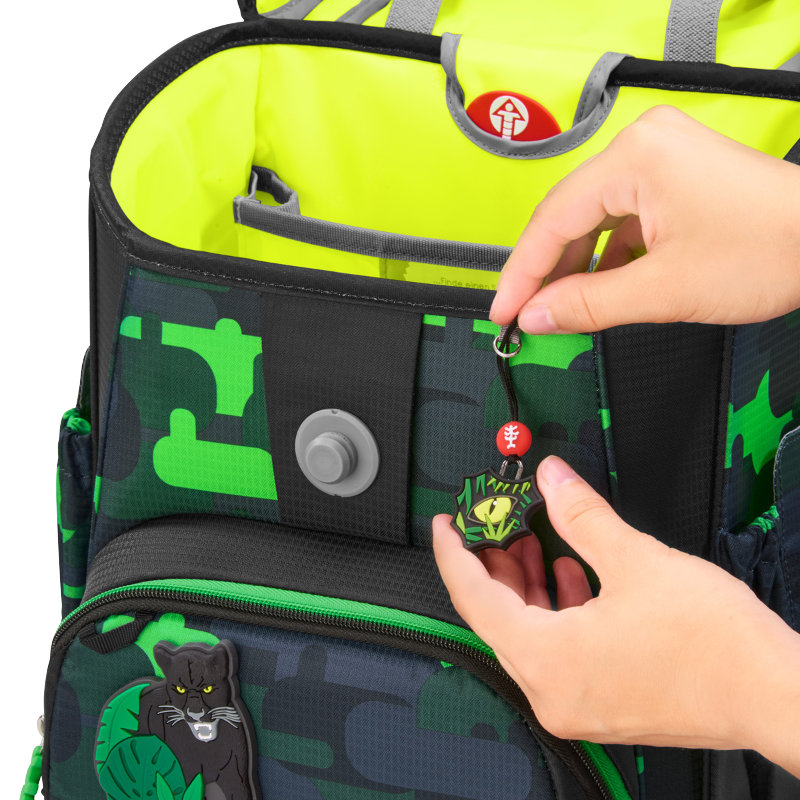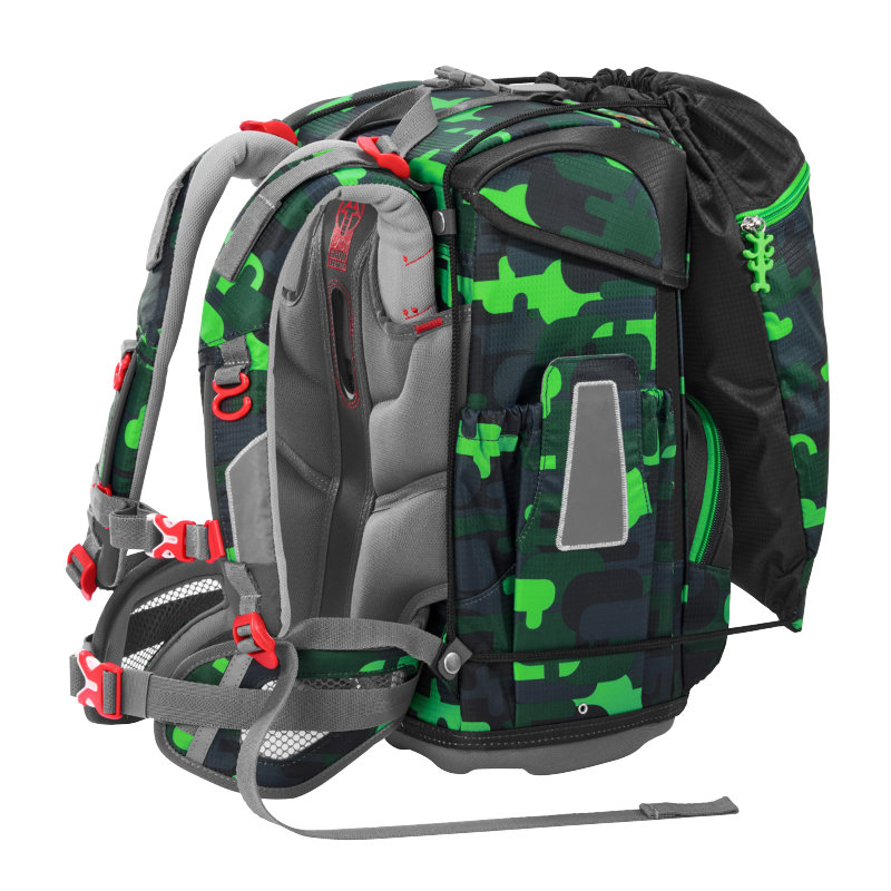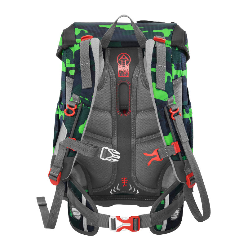 Der höhenverstellbare, abnehmbare Brustgurt und der abnehmbare Hüftgurt helfen das Gewicht von den Schultern auf den ganzen Körper zu verteilen. Die Lageverstellriemen sorgen für eine zentrale Platzierung auf dem Rücken. Der Ranzen läßt durch seine Gurte und die optimale Einstellung perfekt zum Bus sprinten. Ranzen auf, Gurte nachziehen und auf geht`s.