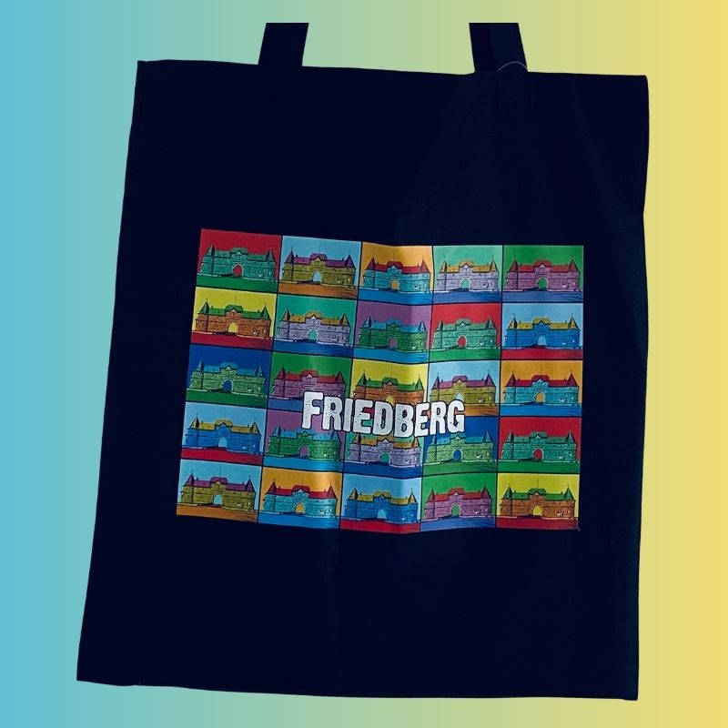 Friedberg Baumwollbeutel lang&schwarz mit Popart südl. Burgeingang