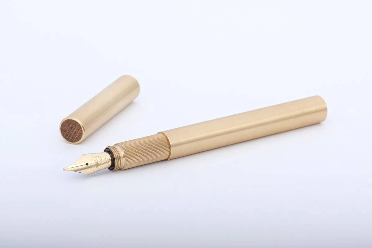 Longcap aus gebürstetem Messing & Eiche | ELBWOOD Füllhalter
