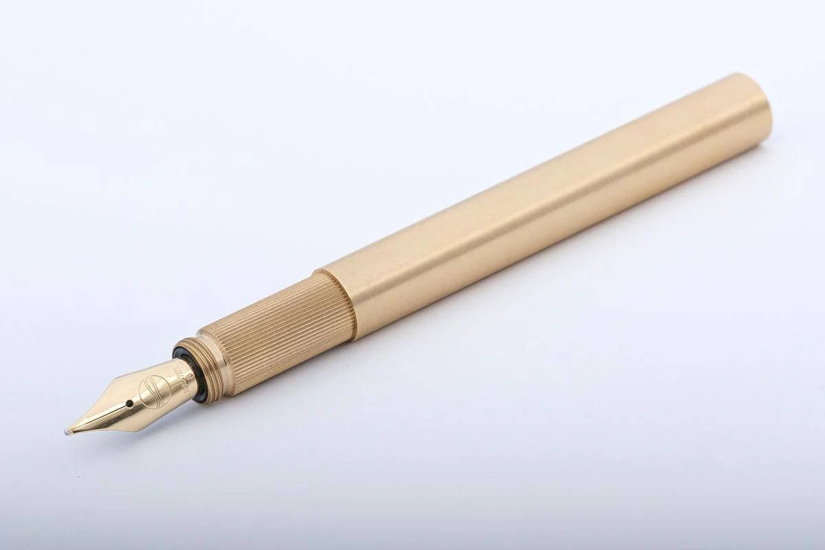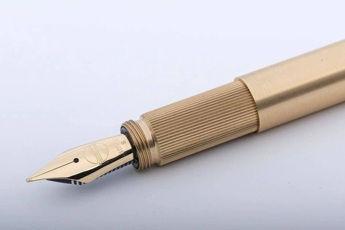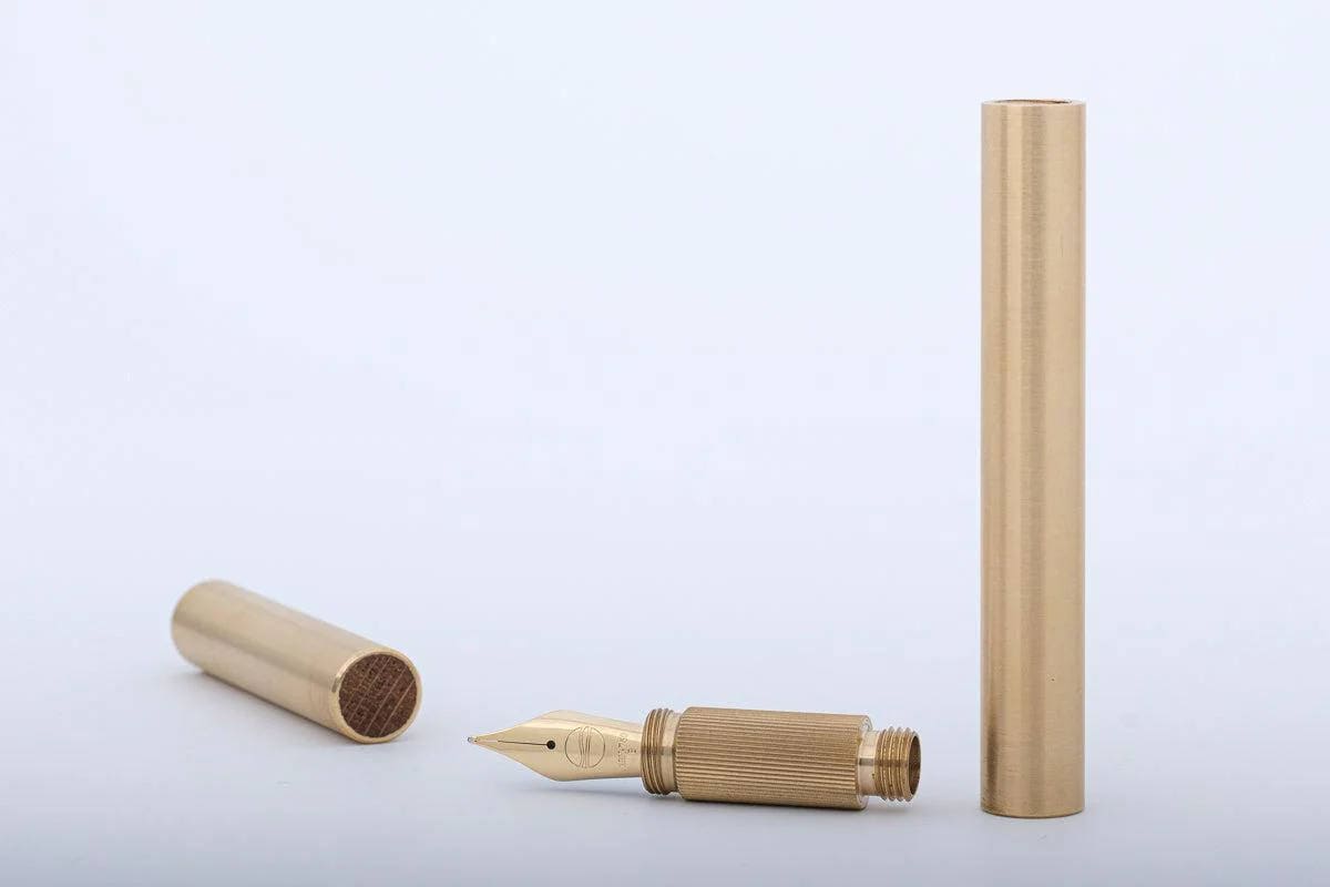 Alle Teile des luxuriösen Füllhalters sind aus massivem gebürstetem Messing gefertigt.