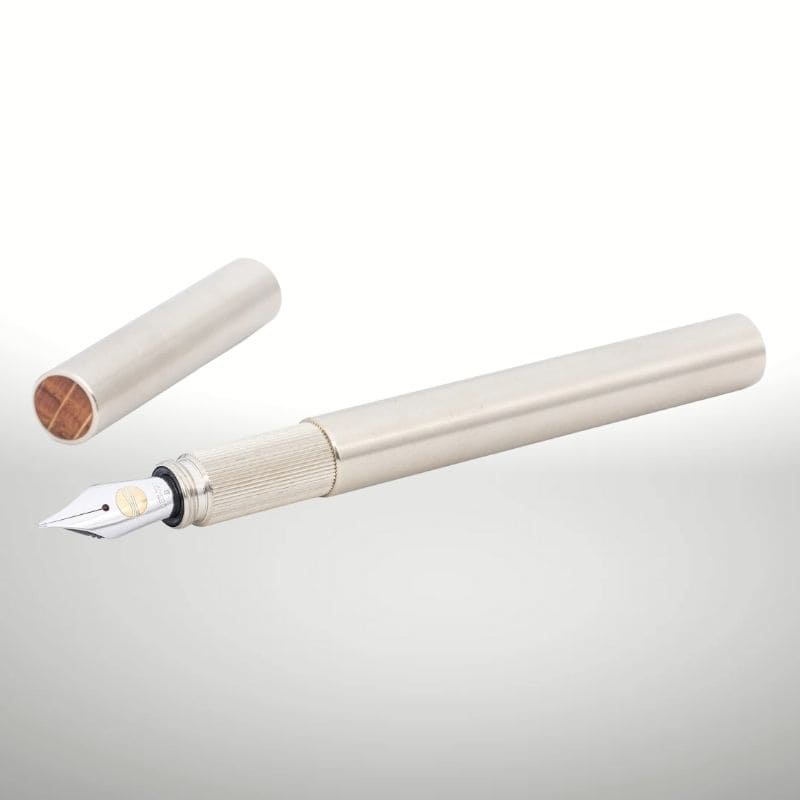 Dieser minimalistische und schnörkellose Füllhalter lenkt die Aufmerksamkeit auf sein hochwertiges Material, das Neusilber.