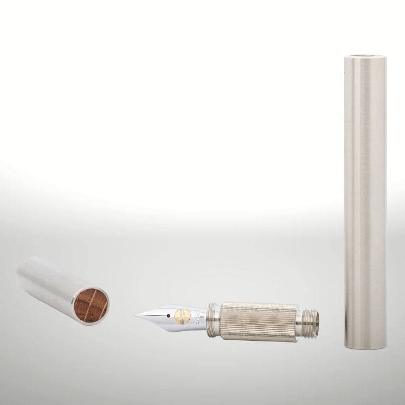 Alle Teile des luxuriösen Füllhalters sind aus gebürstetem Neusilber gefertigt.