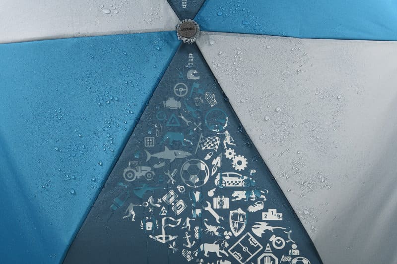 Sobald die ersten Tropfen fallen, erscheinen auf dem Schirm zauberhafte Muster und Motive. Der Magic Rain Effekt sorgt für echte Begeisterung – und macht Regentage plötzlich spannend. Die weißen Motive färben sich bei Regen bunt. It's magic.