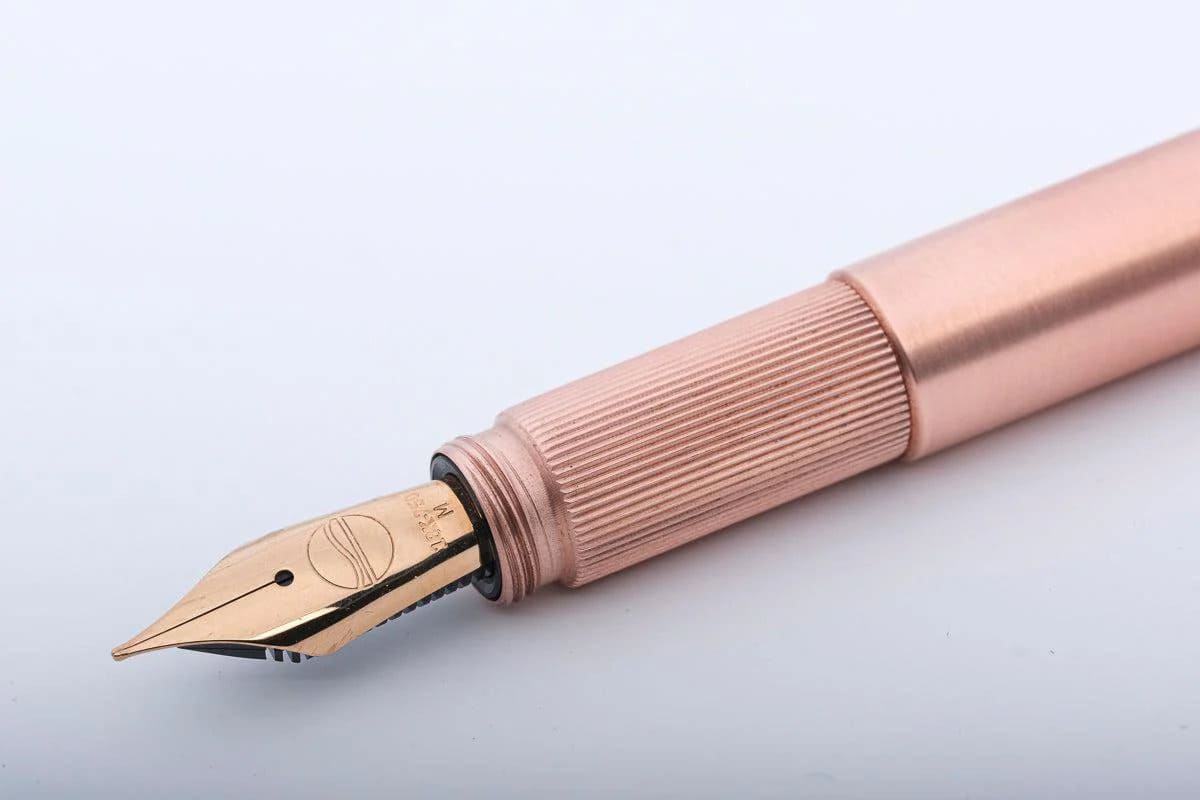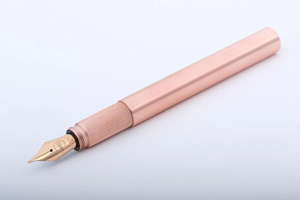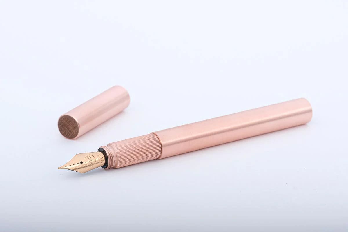 Alle Teile des luxuriösen Füllhalters sind aus massivem gebürstetem Kupfer gefertigt.